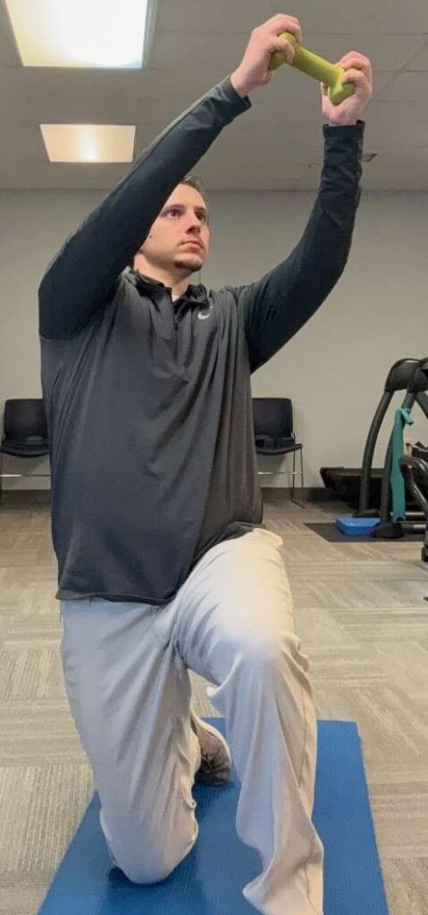 • Start by getting onto one knee with the opposite foot in front of the other knee