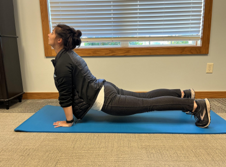 Next, you will return to the plank position. Then, lower your hips toward the floor and