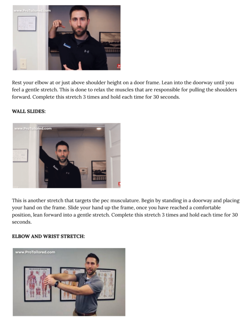 rounded position. Performing pec stretches intermittently throughout the day can help you combat