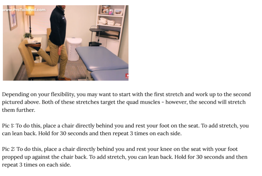 Another muscle group that can get tight with periods of prolonged sitting are the quads – the big